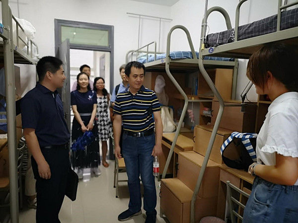 新生见面会结束后,学院领导老师冒雨走访了新生宿舍,进一步了解新生的生活情况。(文/张弩;图/张弩、赵媛媛;审稿/赵媛媛)