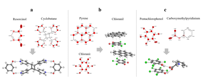 可解释性分析部分对DVL-CC模型进行了深入的可解释性评估。本研究通过分析模型识别的关键化合物特征,并将这些特征与已知的共晶形成机理和数据库进行比对,来验证模型的预测准确性。分析结果表明,DVL-CC模型不仅能够准确预测共晶形成的可能性,还能够清晰地指出哪些化学结构特征是驱动共晶形成的具体原因(图3)。此外,模型还能揭示出分子间相互作用的关键区域和机制,例如氢键供体与受体的匹配情况,以及分子间π-π堆积的潜力,从而进一步加深了对共晶形成机理的理解。这项分析为DVL-CC模型的解释能力提供了有力的证据,并为未来的共晶设计和优化提供了科学依据。