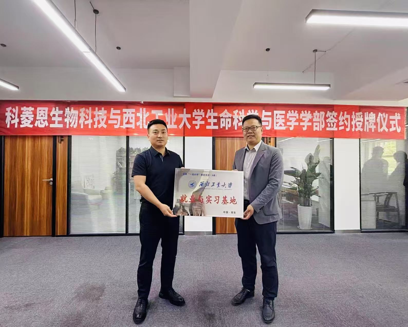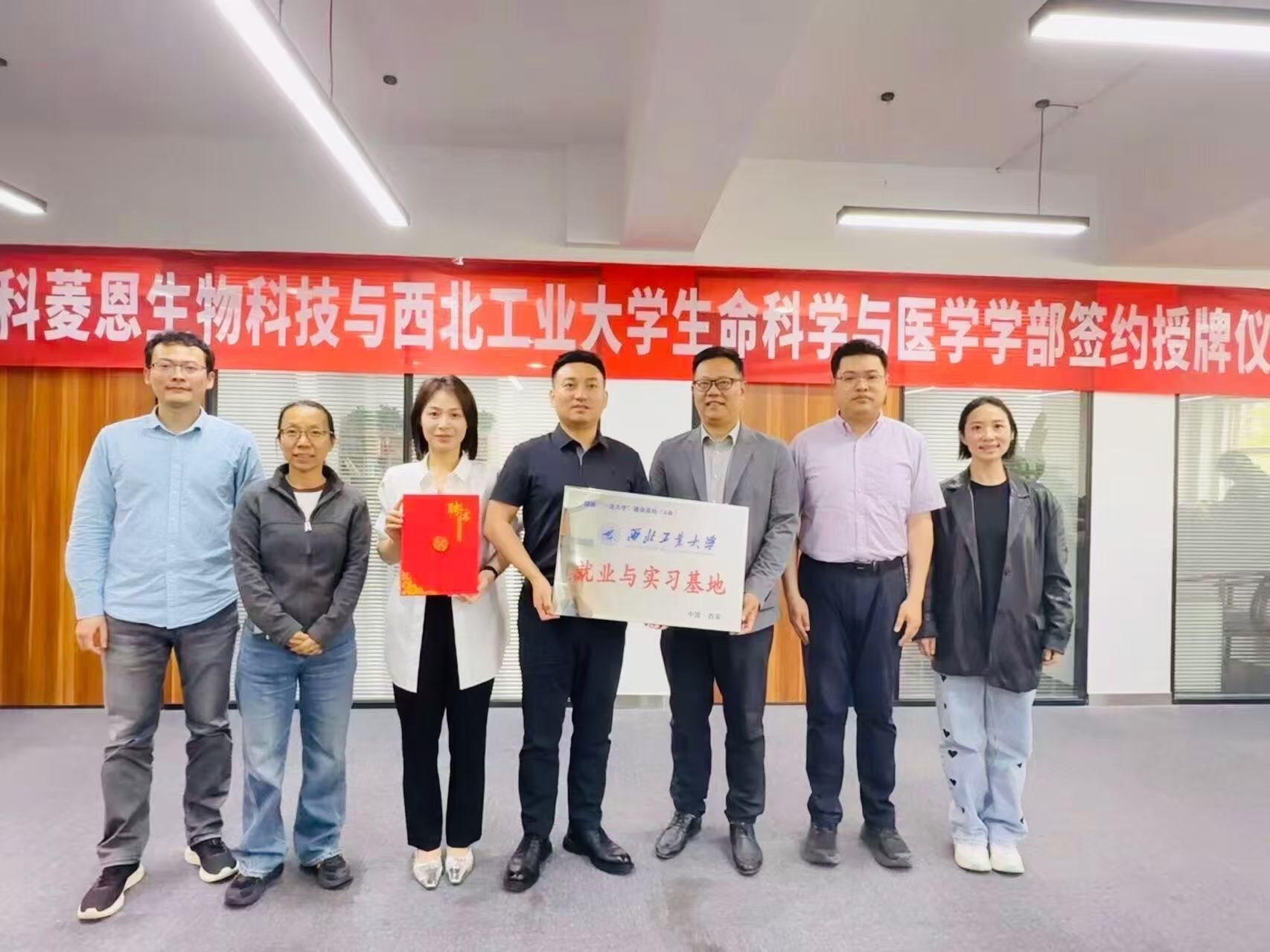 4月22日下午,生命科学与医学学部师生赴陕西科菱恩生物科技有限公司技术中心隆重举行“就业与实习基地”签约挂牌仪式。陕西科菱恩生物科技有限公司董事长杨涛、技术总工张锟、研发经理王文飞及部分企业高管,生命科学与医学学部党委副书记万海东、bat365在线中国官网登录入口副教授邓旭东、研究生辅导员王徽及学部学生代表参加了本次活动,陕西科菱恩生物科技有限公司人事经理徐静怡主持仪式。