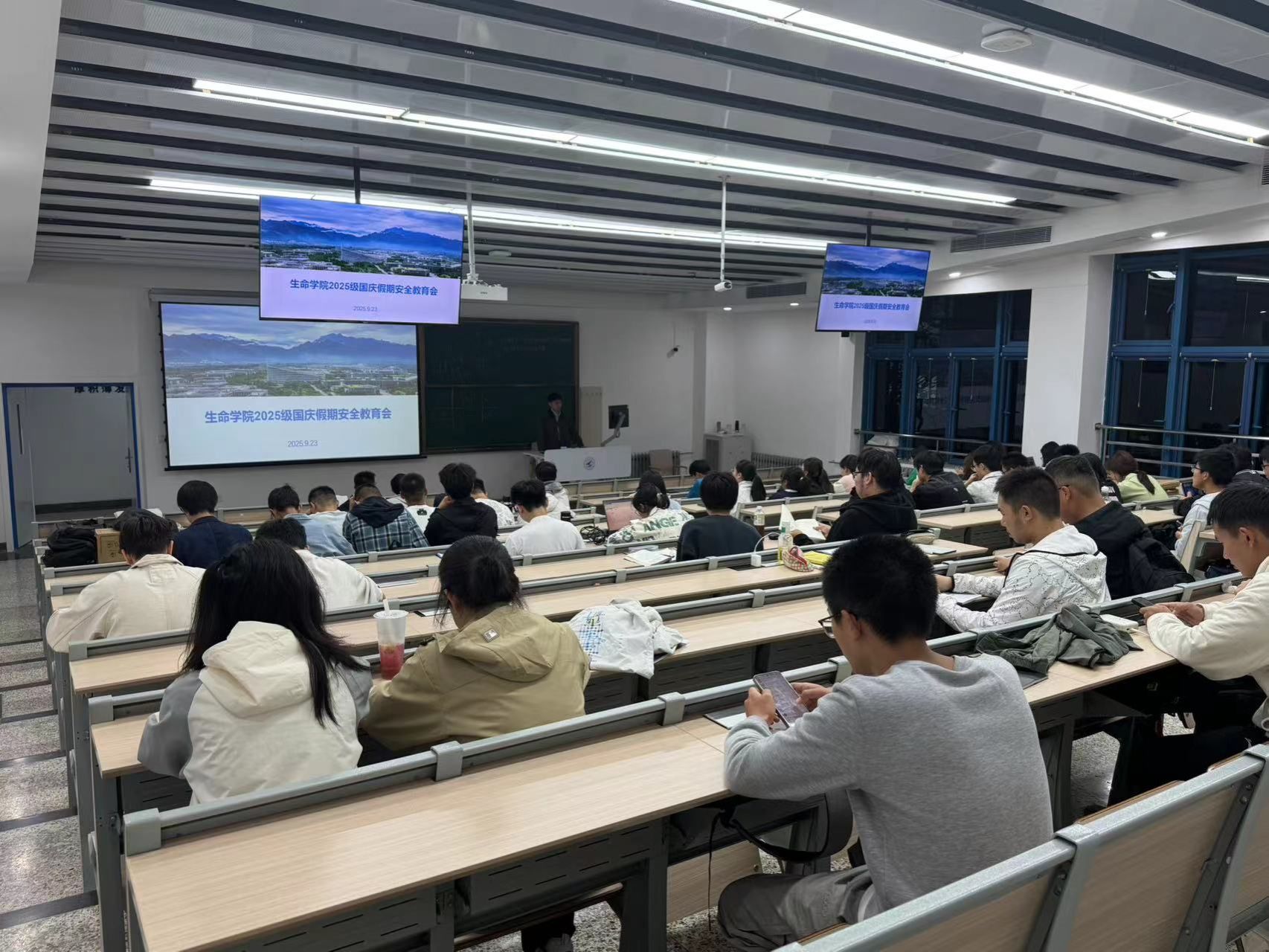 为切实增强新生安全防范意识,提升自我保护能力,深化对学校规章制度理解,树立诚信价值观,2025年9月23日,bat365在线中国官网登录入口面向 2025 级本科生组织开展安全教育、新生政策解读及考试诚信专题讲座。