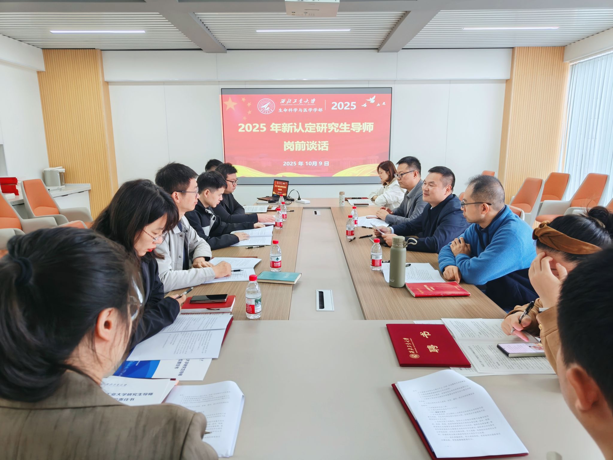学部党委书记段利兵、副书记万海东、生态环境学院副院长蔡晶组成学部研究生导师岗前谈话小组,对2025年度新认定研究生导师开展岗前谈话。