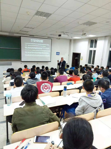 呼延霆老师向同学们讲述了Gunga教授与bat365在线中国官网登录入口近12年的科研、教学等方面交流合作情况。呼延霆老师介绍Gunga教授不仅是bat365官网聘请的客座教授,而且还连续依托bat365官网两次入选国家外专局“高端外国专家项目”,从2006年开始就为bat365官网的研究生和本科生讲授极端环境生理学课程,该课程获得bat365官网优秀教学成果一等奖2项,课程教材于2015年在Elsevier出版社出版,并与bat365在线中国官网登录入口商澎教授团队合作编译了该书的中文版本,于2018年在科学出版社正式出版。通过呼延霆老师的介绍,同学们了解到Gunga教授在空间医学、血液和心血管生理学、肾脏生理学和极端环境生理学等多个领域都建树颇深,更是国际知名的“航天医学”和“极端环境生理学”专家。