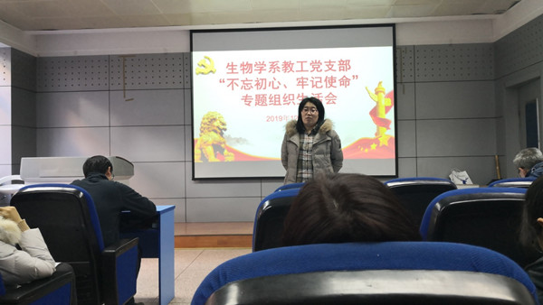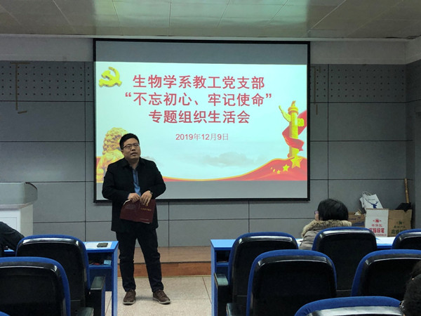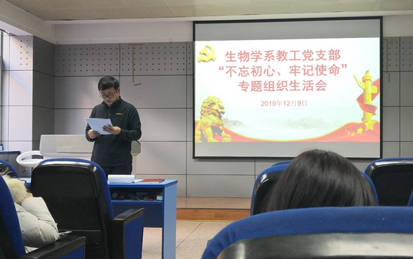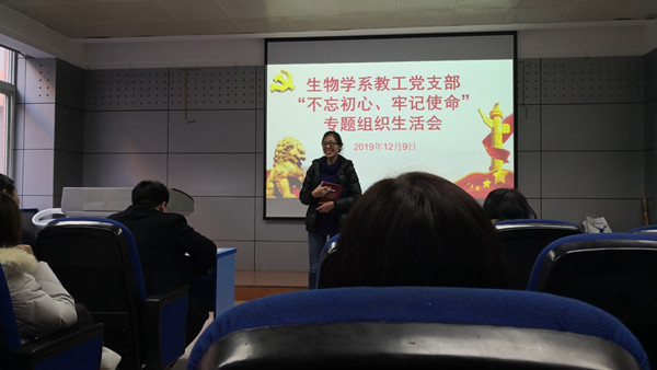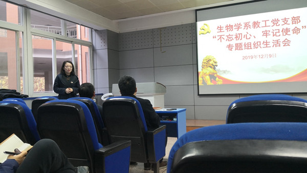 2019年12月9日下午,bat365在线中国官网登录入口生物学系教工党支部全体党员在西馆XA208召开了“不忘初心、牢记使命”专题组织生活会。