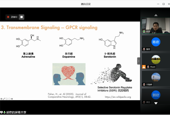 12月29日下午,“寻梦·启航”生命科学大讲堂系列讲座第六期成功举办。西湖大学生命科学学院胡奇研究员在线为全院师生作题为《细胞膜与跨膜信号转导》专题讲座。副院长牛卫宁、学院本科生、感兴趣的研究生及教师在线聆听了讲座。讲座由牛卫宁主持。