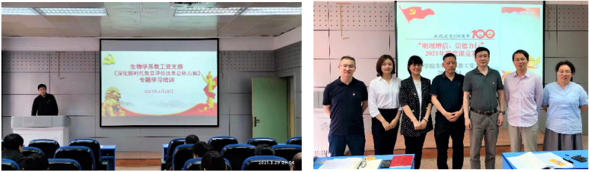 学党史、践承诺、见行动。在庆祝建党一百周年系列教育活动中,支部组织开展“明理增信、崇德力行”微党课比赛活动;开展 “学史崇德守立德树人初心”、“学党史,争做四有好老师” 主题党日,党员结合个人工作实际,撰写个人行动方案等活动。行动方案可以是讲好一门课、攻克一个科研难题或帮助一个困难学生等内容,将党史学习教育融入人才培养、科学研究的实践中。