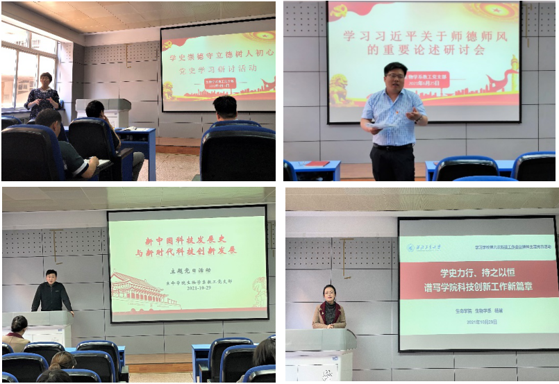 聚焦青年教师思想教育,帮助青年教师成才。支部根据青年教师的需要,围绕成长成才主题,开展主题党日活动。在“新中国科技发展史与新时代科技创新发展”的主题党日活动中,杨慧同志以“学史力行,持之以恒---谱写学院科技创新工作新篇章”为题,围绕新中国成立以来党领导科技工作的发展历程、学校科技事业发展历程及基本经验以及学院科技创新工作的展望,带动学院青年教师在基础研究中发挥主力作用。通过“传承红旗渠精神,锻造新时代铸魂人”为主题的培训学习实践活动,培养青年教师“自力更生、艰苦创业、团结协作、无私奉献”的精神。
